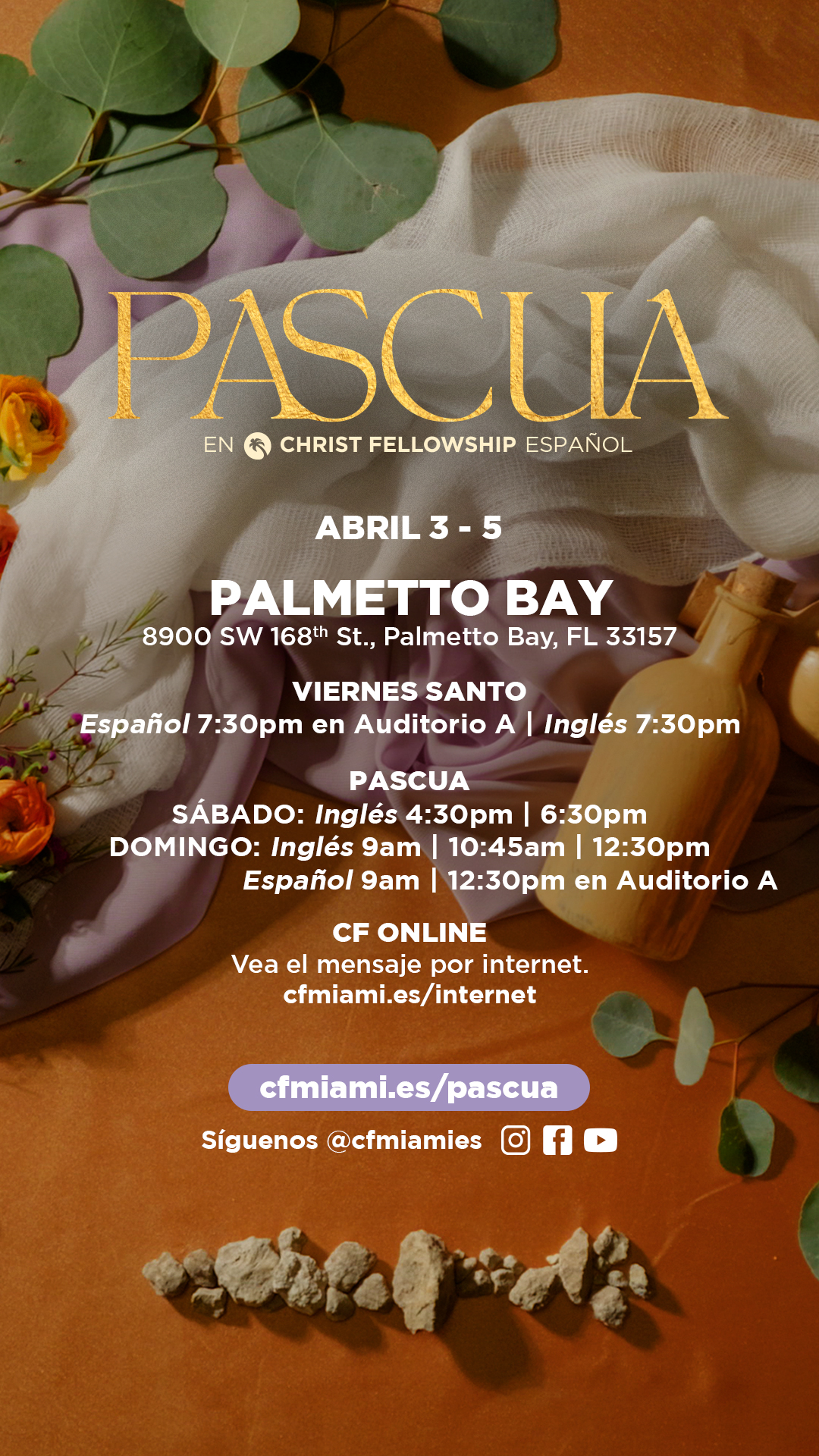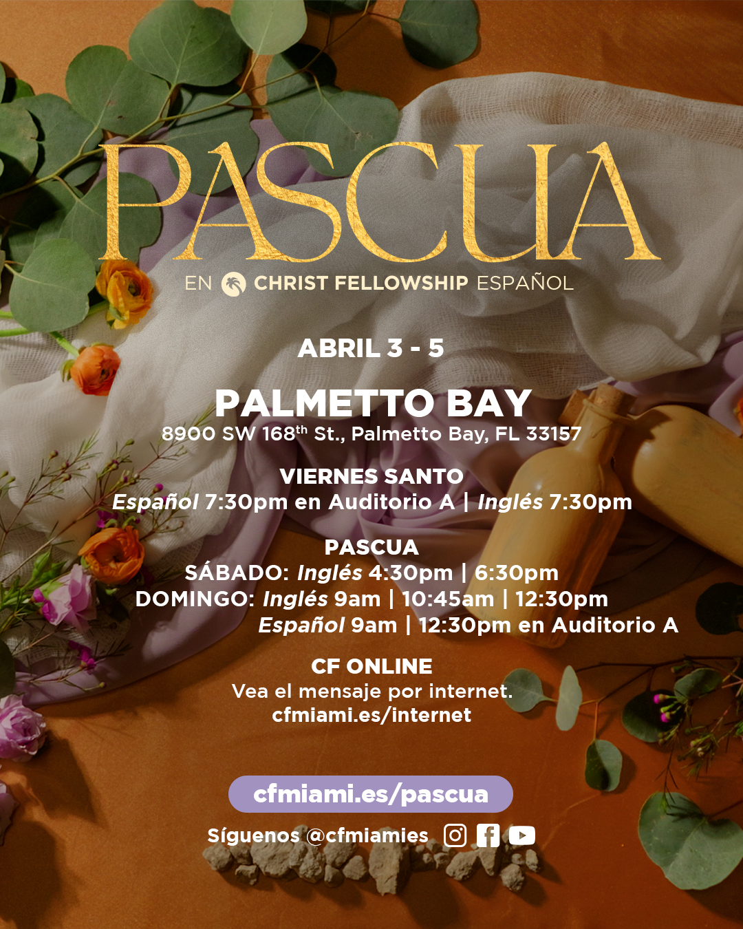 También puedes disfrutar del mensaje en inglés y español por internet en nuestra página web, la aplicación CF Miami, Facebook Live y YouTube. Síguenos @cfmiami y @cfmiamies en todas las redes sociales.